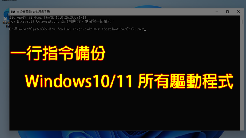 一行指令備份Windows10/11所有驅動程式 閱讀全文 »